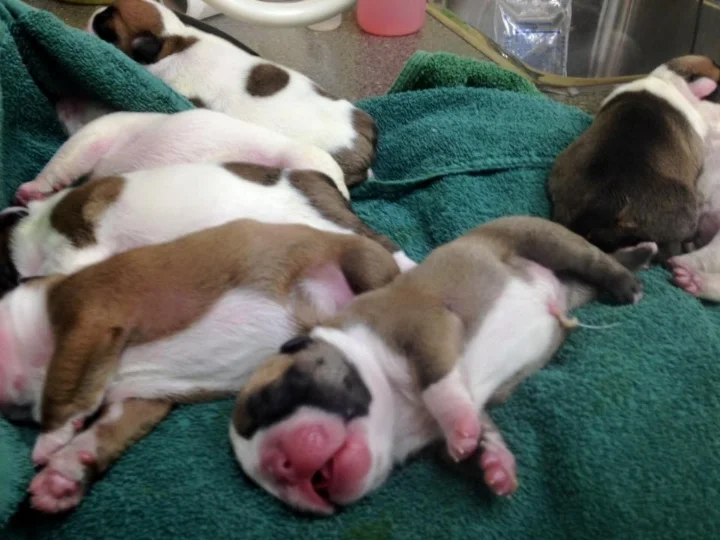 The mother of this litter of puppies had progesterone testing at the Hart Family Veterinary Clinic.
